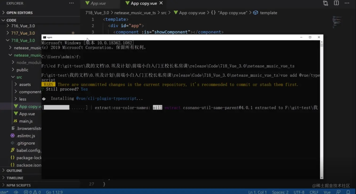因为等等启动脚手架后,原有的App.vue 文件会被更改为跳转到TypeScript原厂设置的默认页面,所以需要保留副本以减少不必要的工作量。