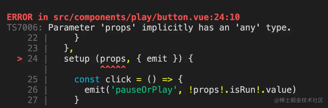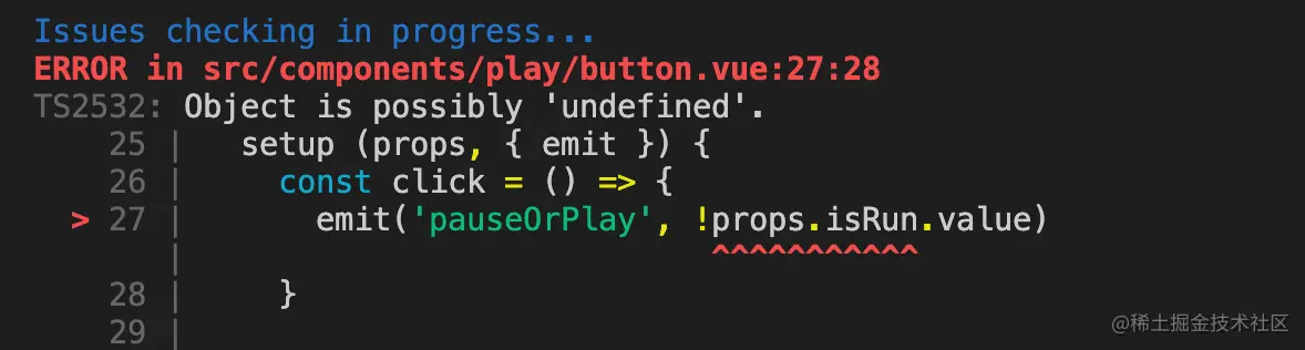 因为props可能为空,那么就没有isRun属性,依据TS的语法,就需要在可能没有的属性后面加感叹号了。