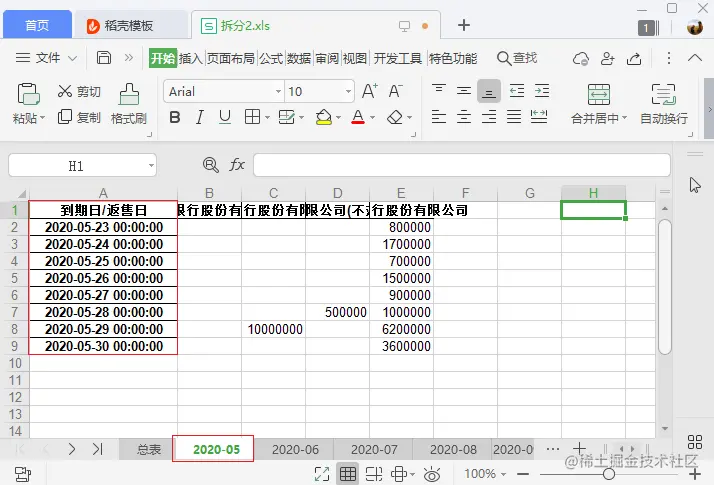 - 最终将每月的数据保存到同一 .xls 文件中的不同 sheet中 以图示例需求: