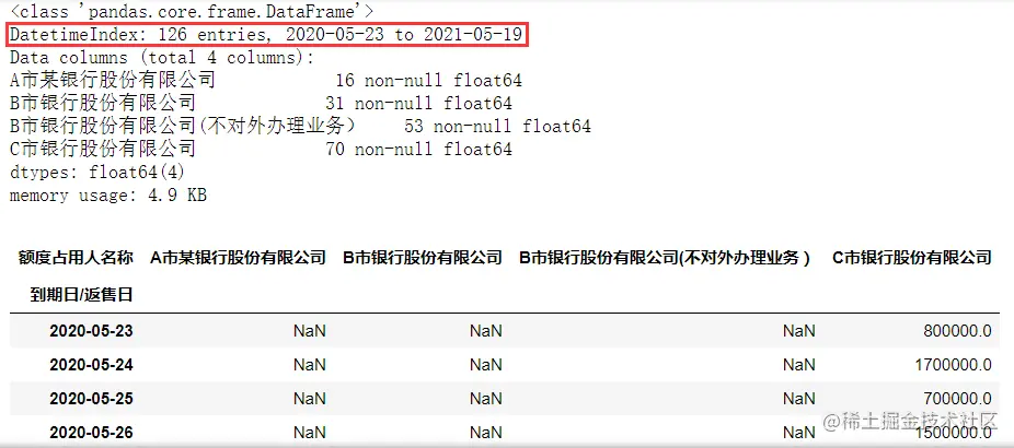 此时,我们就来查看一下 透视表 的到期日/返售日是否就是时间序列索引类型。