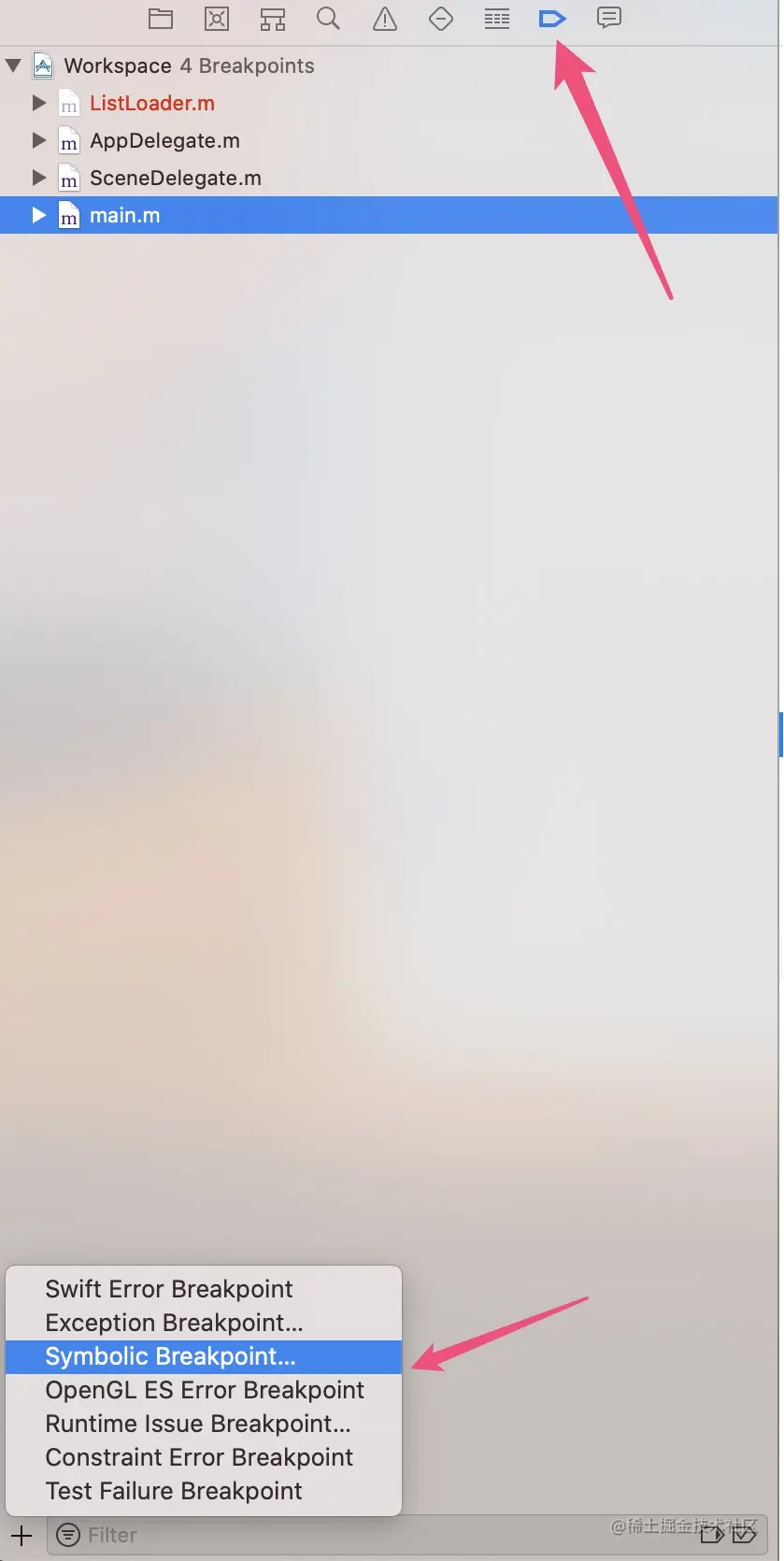 新建一个Symbolic Breakpoint...。