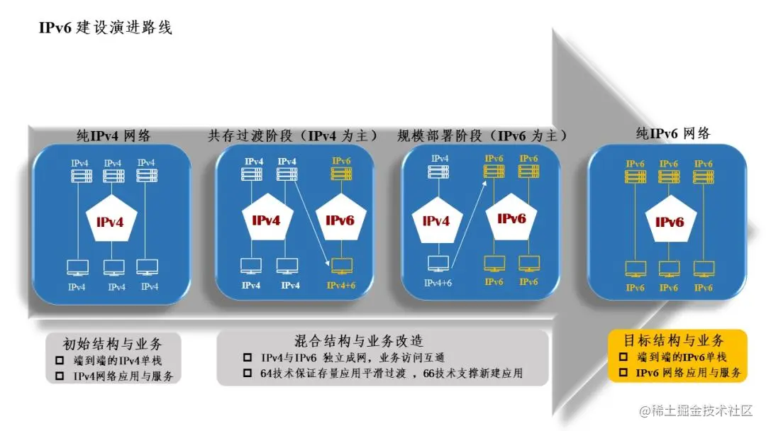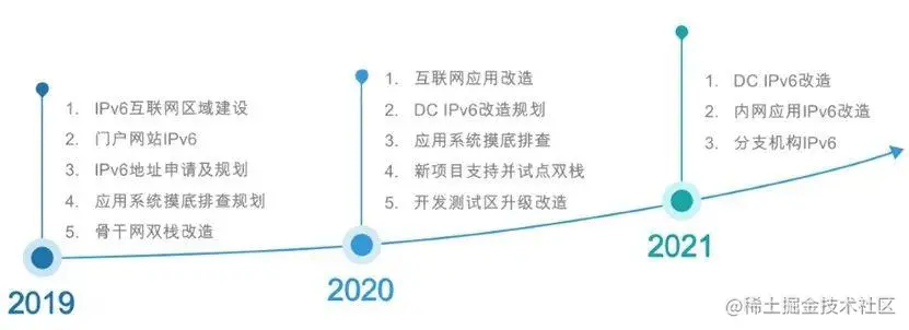 当前,IPv6网络已成为各国推动新的科技产业革命和重塑国家长期竞争力的先导领域,全球各个国家均加快了向IPv6过渡的步伐。2019年,人民银行同银保监会、证监会联合发布《关于金融行业贯彻〈推进互联网协议第六版(IPv6)规模部署行动计划〉的实施意见》(以下简称《意见》)。对此,郑州银行积极响应,于2019年初成立专项领导小组,绘制IPv6改造整体工作计划线路图,同时制定明确的IPv6改造工作计划,通过整体规划,持续推进IPv6的建设和改造升级,从而保证整个建设过程稳定、有序开展;细分来看,从2019年起,郑州银行将每年的工作进一步细分成3-5个阶段,从而确保每一份工作落到实处,每一次建设都为最终的完成奠定坚实基础。
