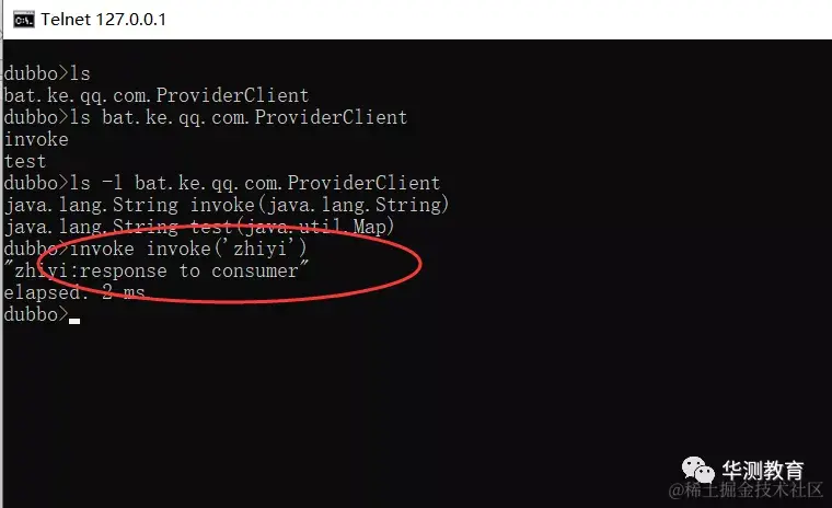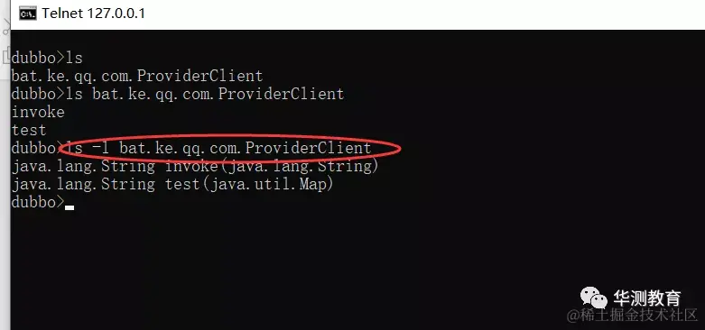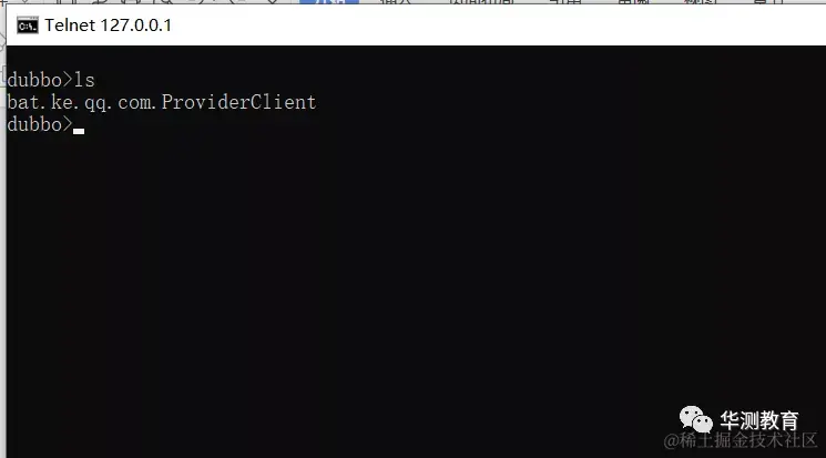打开cmd命令行:telnet 127.0.0.1 30001 ,然后回车,命令ls,可以获取服务接口的列表