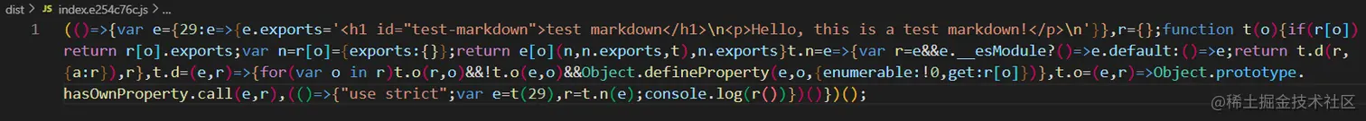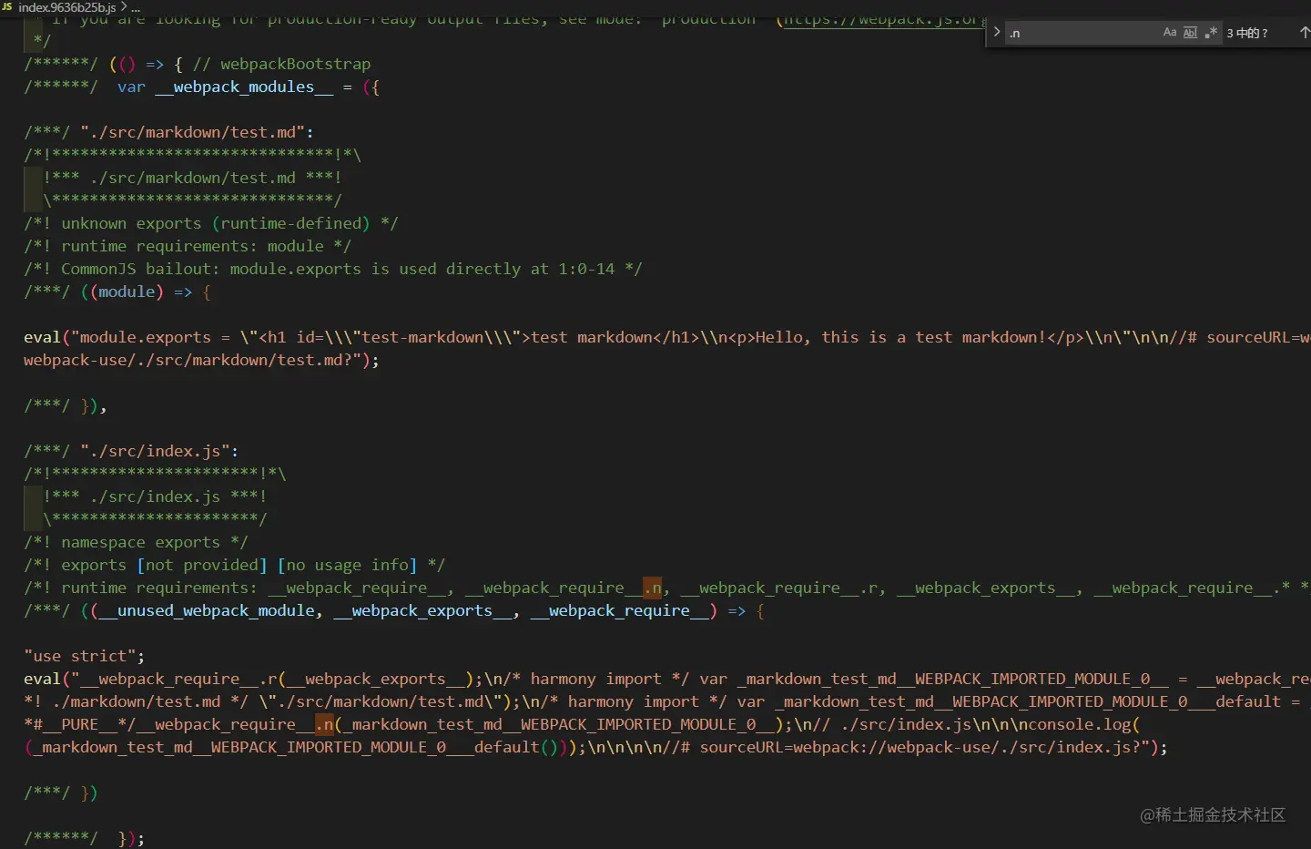 发现实际上它是个数组,数组的每一项是个函数,其内部内容就是打包后的./src/index.js和./src/markdown/test.md这两个模块文件的内容。