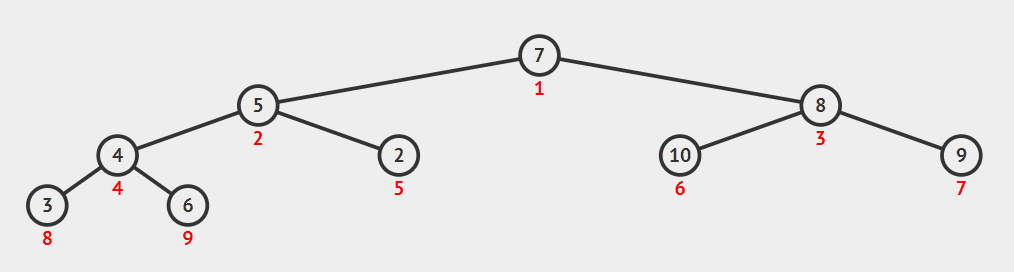 举个例子,nums = {7,4,3,4,7,8,7,5,6},help = {1,3,4,5,8,9},我们逆序遍历nums,对于nums[6] == 7这个元素,对应的help[7-min(nums)]就是这个7应该在排序后的数组中的位置,接着help[7-min(nums)]做自减运算,变成nums[4] == 7在排序后的数组中的位置。