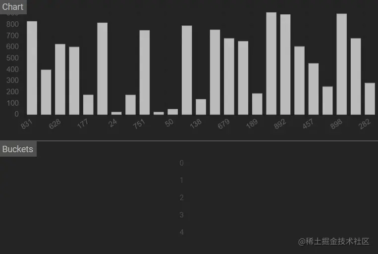 对于如何令各个桶分别有序,可以采用递归或其他的排序算法来进行,这里就以库排序函数来演示,主要体现的是通过桶来降低数据规模的思想。假设数据范围在0到99,共设10个桶,每个桶的范围为10。