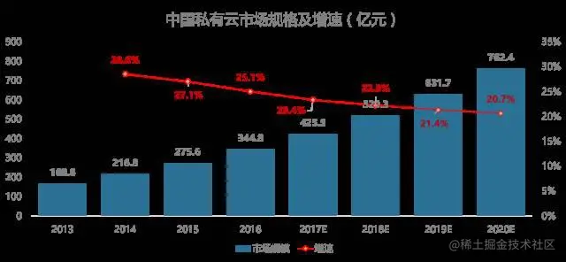 据中国信息通信研究院《中国私有云发展调查报告(2017年)》数据显示:2016年中国私有云市场规模达到344.8亿元,相比2015年增长25.1%。预计,2017-2020年中国私有云市场仍将保持稳定增长,到2020年市场规模将达到762.4亿元。