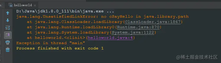 上面的错误是说找不到cSayHello:no cSayHello in java.library.path,所以啊,这个c/c++的方法我们要自己实现,毕竟我们用的不是操作系统以及定义好的方法。