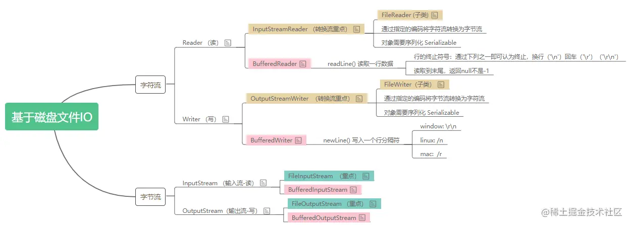 我们通过这个我实际遇到过的问题,来熟悉了解了下IO流的一些操作,我再梳理总结一下,如下图所示(若有错误请指出,谢谢大佬们指点)