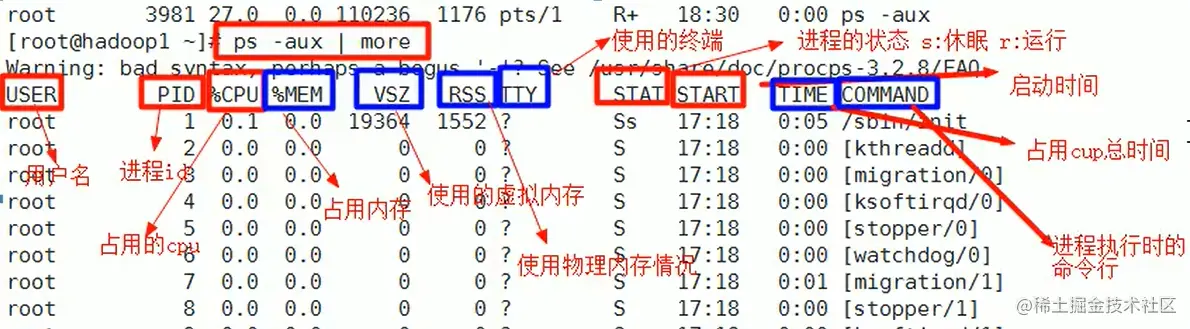 PS -aux |more