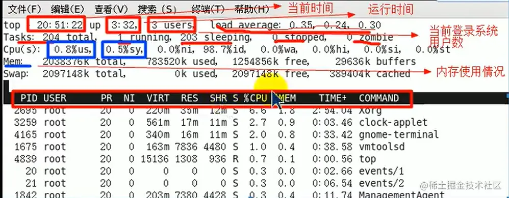 top指令展示数据说明
