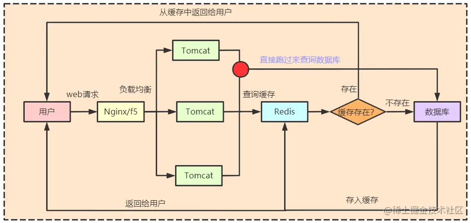 比如我们基本上都经历过购物狂欢节,假设商家举办 23:00-24:00 商品打骨折促销活动。程序小哥哥在设计的时候,在 23:00 把商家打骨折的商品放到缓存中,并通过redis的expire设置了过期时间为1小时。这个时间段许多用户访问这些商品信息、购买等等。但是刚好到了24:00点的时候,恰好还有许多用户在访问这些商品,这时候对这些商品的访问都会落到数据库上,导致数据库要抗住巨大的压力,稍有不慎会导致,数据库直接宕机(over)。