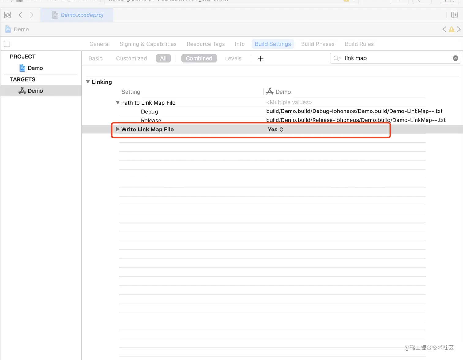 clean后重新编绎,查看Demo-LinkMap-normal-x86_64文件