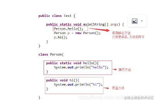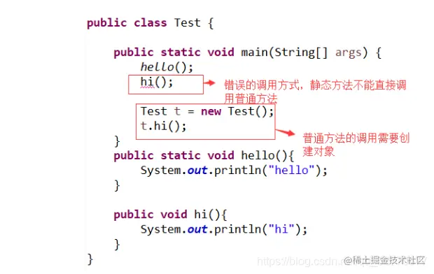 2) 静态方法可以直接调用静态方法,但是调用普通方法只能通过对象的实例才能调用。
