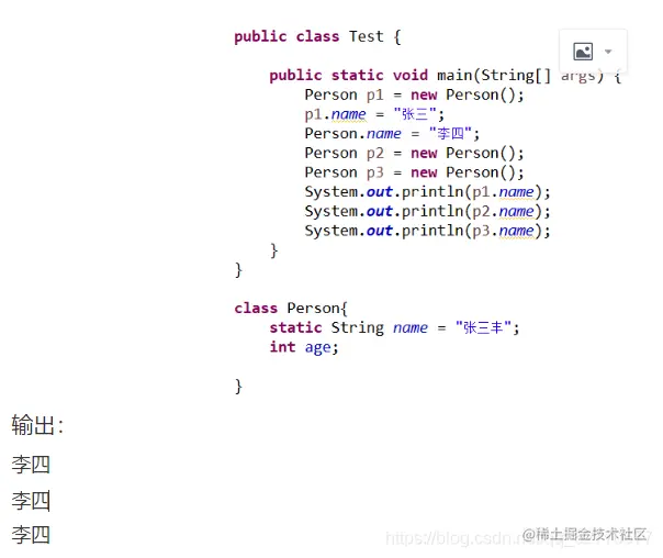 2.修饰方法: 用static关键字修饰的方法叫做静态方法。静态方法我们已经用过,它有一个特点相信你已经很熟悉,那就是不需要创建对象就可以直接使用。