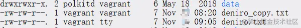可以看到,这个新的 deniro_copy.txt 文件,它的拥有者以及拥有组名都为 vagrant。