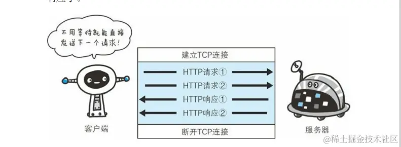 管线化:同时并行发送多个请求,不需要一个接一个地等待响应。