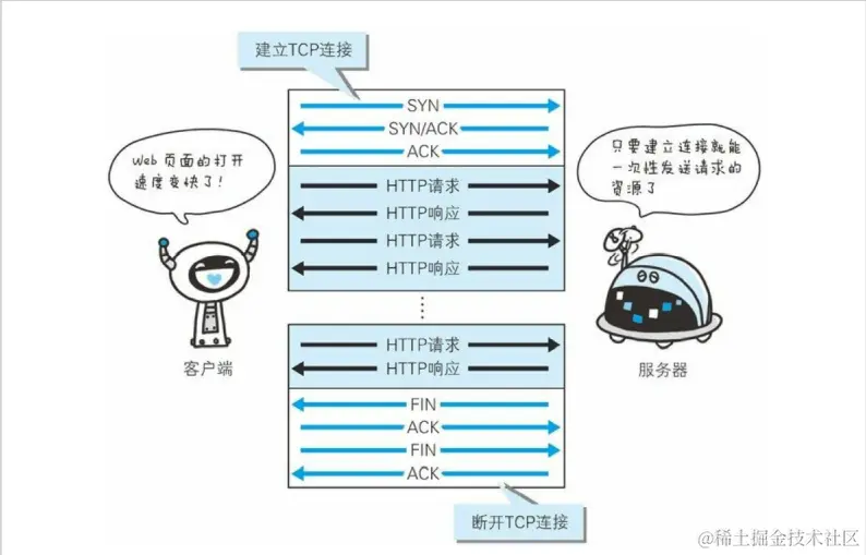 持久连接:建立一次tcp连接后可以进行多次请求和响应的交互,减少了tcp连接和断开的额外开销。