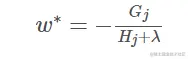 可以很清晰地看到,最终的目标函数只依赖于每个数据点在误差函数上的一阶导数gi和二阶导数hi。 对于这个目标函数obj求导等于0,可以得到一个叶子节点权重w*