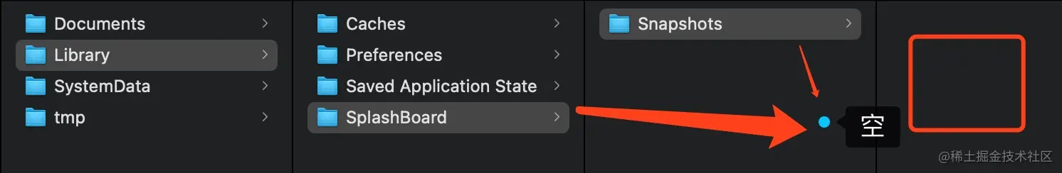 3. 当应用安装后,SpringBoard异步发起截图请求,通过系统第三方SplashBoard.framework生成截图,然后写入沙盒目录,沙盒目录如下【系统是13.3系统】