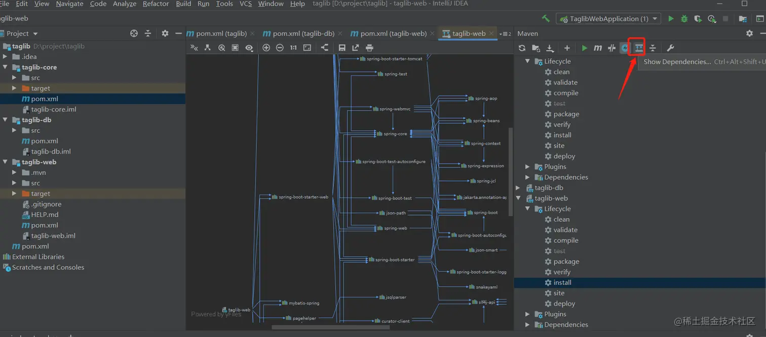 而taglib-db 中的依赖版本如下,暂定为 B 模块: