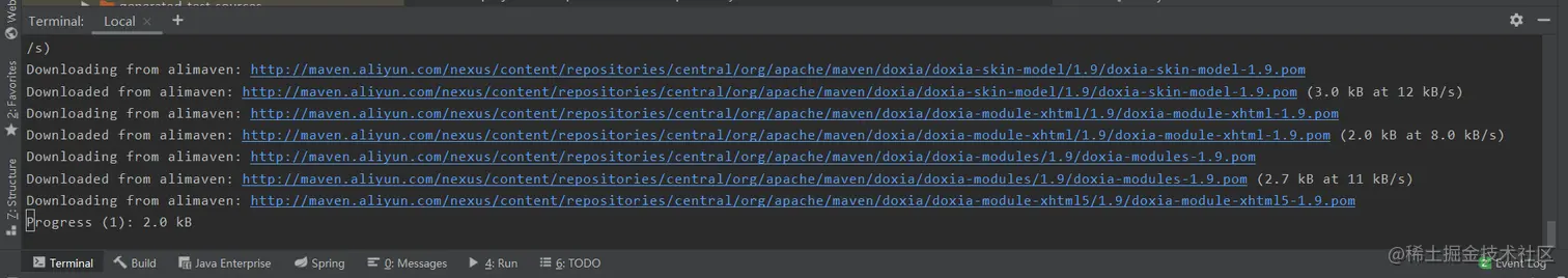 在idea - Terminal里面,可以看到对应的依赖被下载