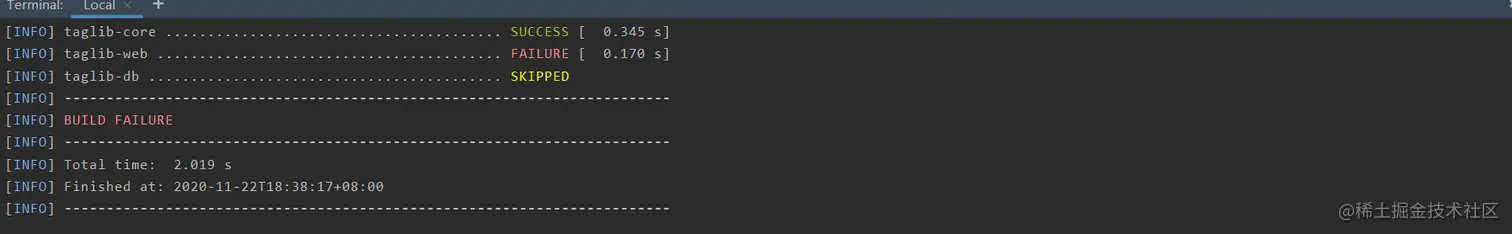 执行完之后我的运行结果如下,这里报错的原因是打包时候默认去阿里云仓库寻找依赖,这里需要配置一下: