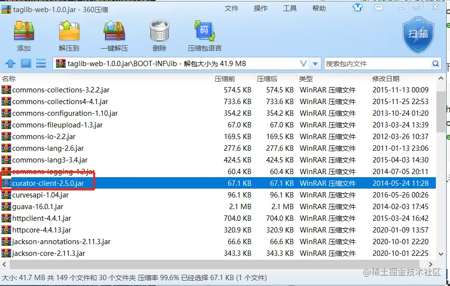 这样的链路最终打包出来的效果是 C -> A -> curator-client 2.5