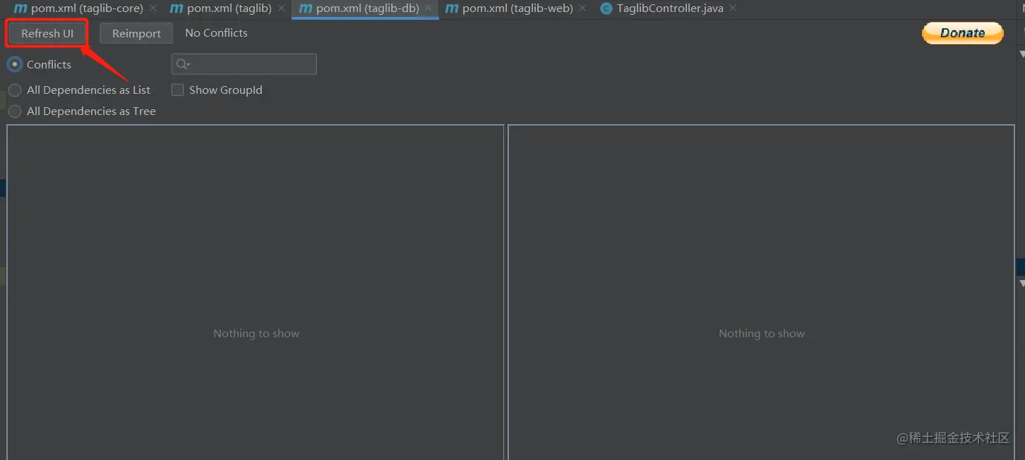 排除完依赖之后,点击左上角的Refresh UI 刷新一下UI的界面: