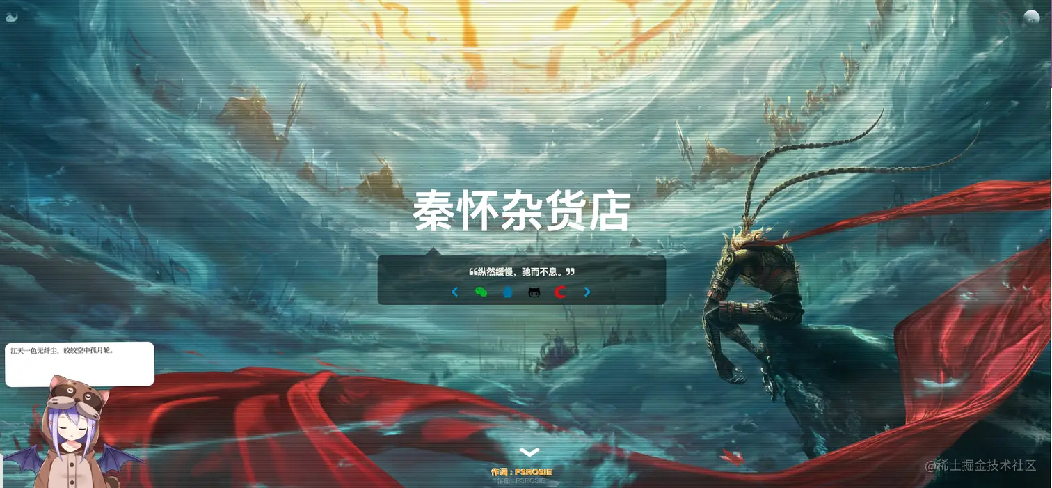 狠人话不多,感谢halo的作者,下面是我自己服务器【腾讯云】搭建的博客首页。网址是: aphysia.cn ,公众号「秦怀杂货店」