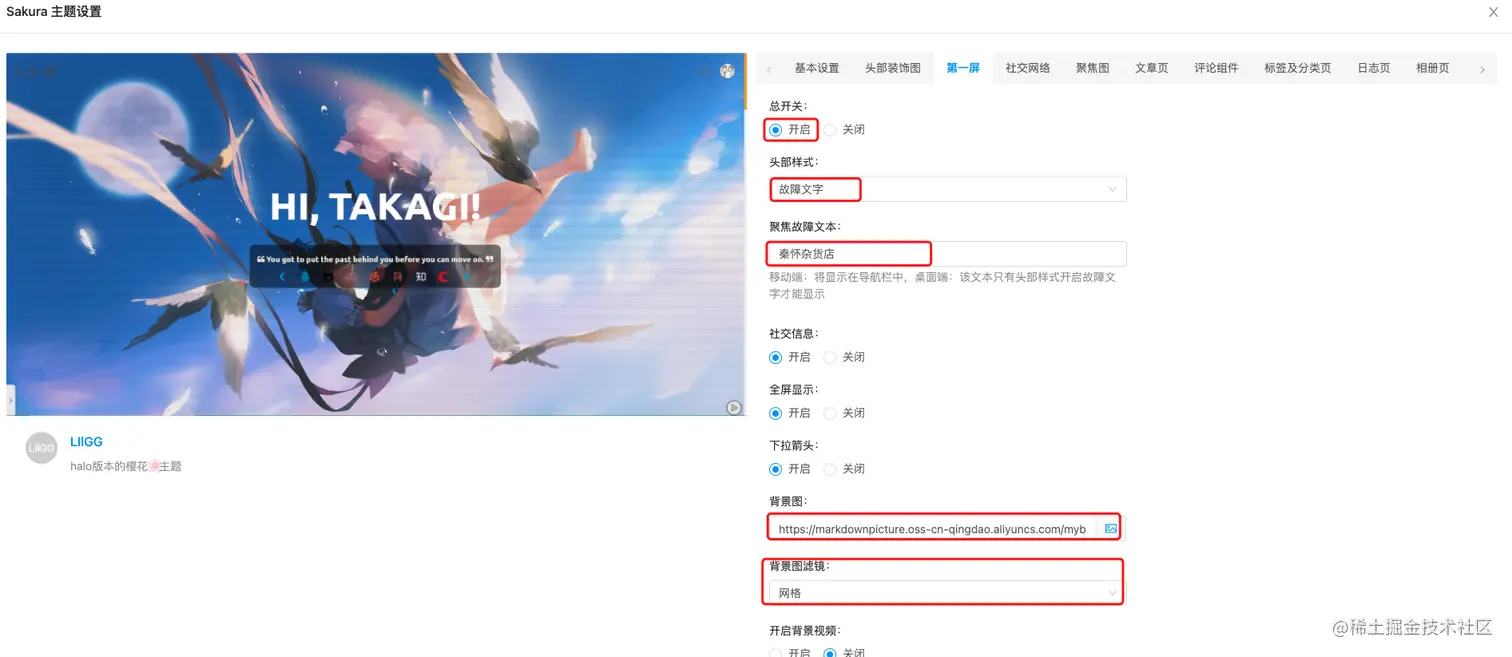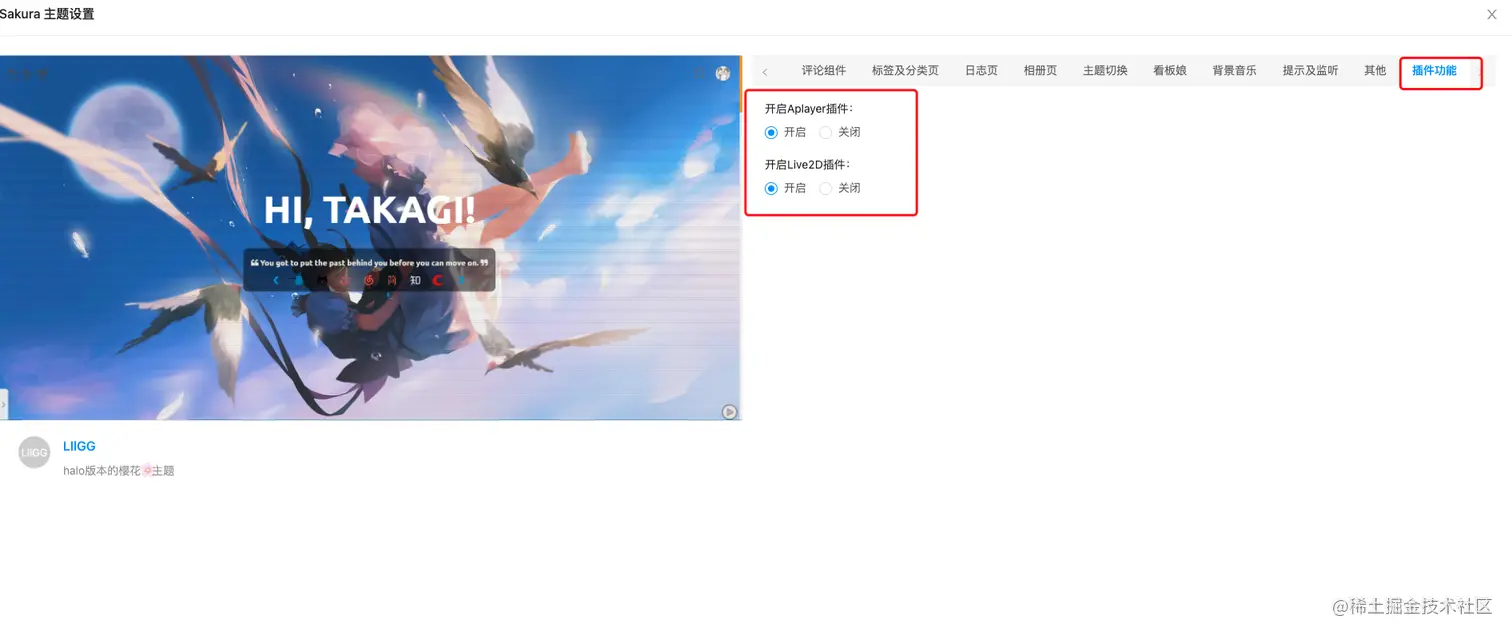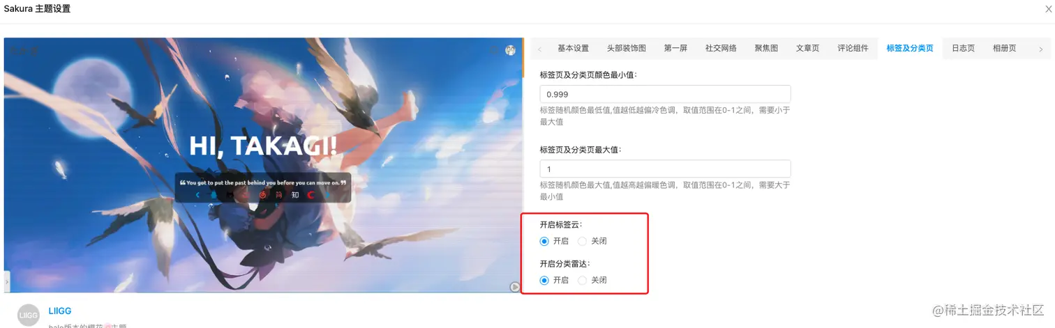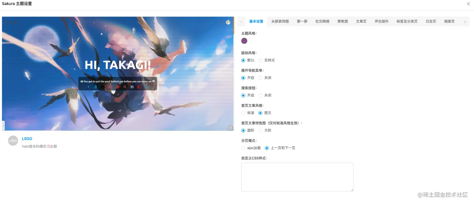 点击上个页面的Sakura主题下的设置,可以对主题进行个性化设置。
