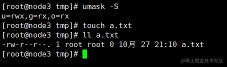 注意:可能大家不太明白这个命令的意思,我们分别执行umask和 umask -S ,如下: