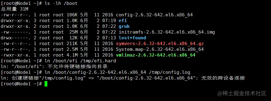 二、创建文件 /etc/issue 的硬链接 /tmp/issue.hard:ln /etc/issue /tmp/issue.hard