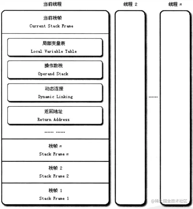每一个方法被调用到执行完成的过程,就对应着一个栈帧在虚拟机栈中从入栈到出栈的过程。