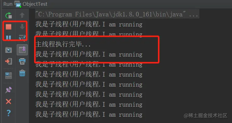 所以,当主线程退出时,JVM 也跟着退出运行,守护线程同时也会被回收,即使是死循环。如果是用户线程,它会一直停在死循环跑。这就是守护线程和非守护线程的区别啦。