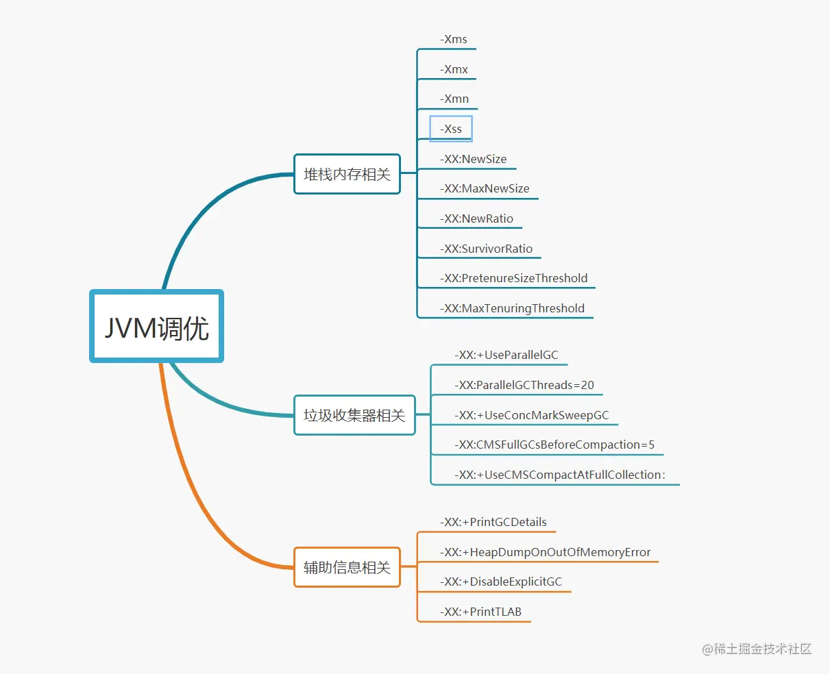 JVM调优其实就是通过调节JVM参数,即对垃圾收集器和内存分配的调优,以达到更高的吞吐和性能。JVM调优主要调节以下参数