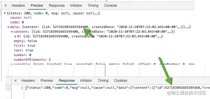 也就是说,一个好好的数字:527183991665594368,经过浏览器一翻译,变成了527183991665594400。