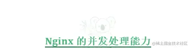 关于 Nginx 的并发处理能力:并发连接数,一般优化后,峰值能保持在 1~3w 左右。(内存和 CPU 核心数不同,会有进一步优化空间)