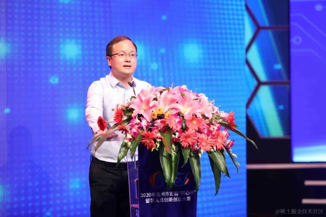 (泉州市委常委、统战部长林万明为初创组金奖项目颁奖)