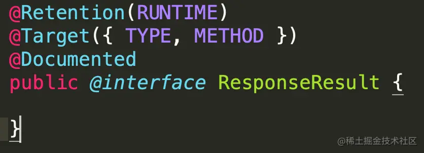 1、定义一个注解@ResponseResult,表示这个接口返回的值需要包装一下