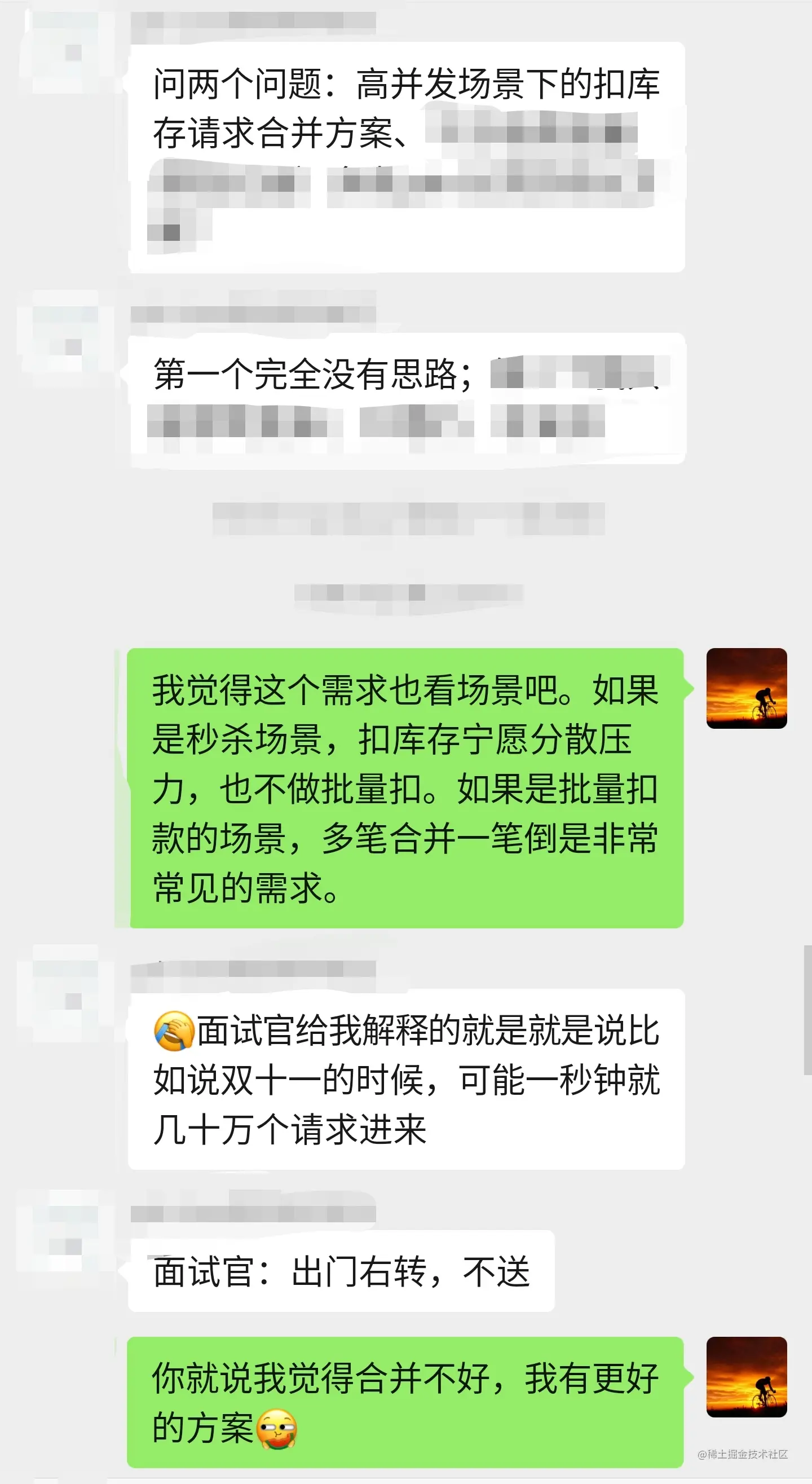 当讨论到具体的代码的时候,要么是对你的方案存疑,想具体的探讨一下落地的可行性。要么就是你答对了,他要准备从代码的交易开始衍生另外的面试题了。
