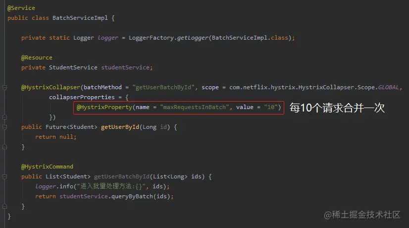 因为 Hystrix 就有请求合并的功能。给大家演示一下。
