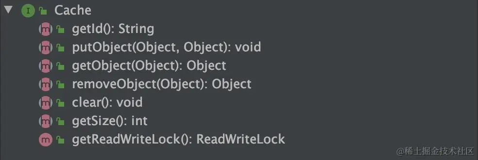 在mybatis中,缓存的功能由根接口Cache(org.apache.ibatis.cache.Cache)定义。整个体系采用装饰器设计模式,数据存储和缓存的基本功能由PerpetualCache(org.apache.ibatis.cache.impl.PerpetualCache)永久缓存实现,然后通过一系列的装饰器来对PerpetualCache永久缓存进行缓存策略等方便的控制。