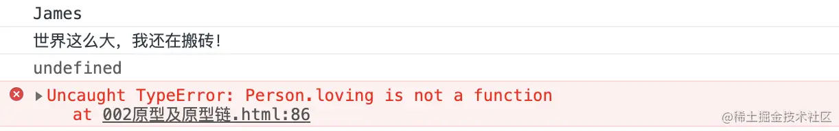 - 从下面的打印结果来看,给构造函数本身添加的方法和属性其本身能够访问,但是实例化后的变量 James 并不能够访问: