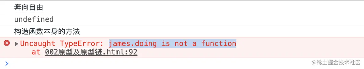 - 从下面的打印结果来看,实例化后的变量 James 可以访问到相对应的属性方法,而构造函数本身并不能够访问到相应的属性方法: