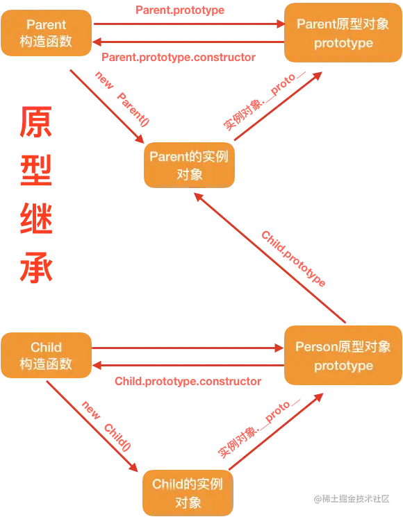 - 首先有两个构造函数 父类Parent 和 子类 Child