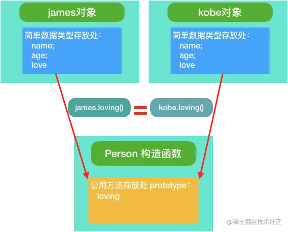 console.log(james.loving === kobe.loving) // true