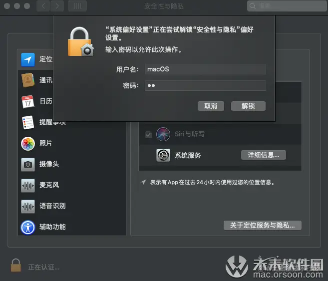 4.点按锁图标以将它解锁,然后输入管理员名称和密码。