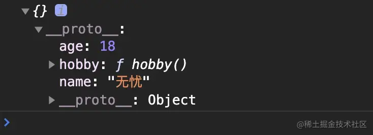 上面的代码中,我们用 Person 去创建了一个对象并且赋给 wuyou,于是 wuyou便有了属性name和age,并且还有了一个hobby方法。