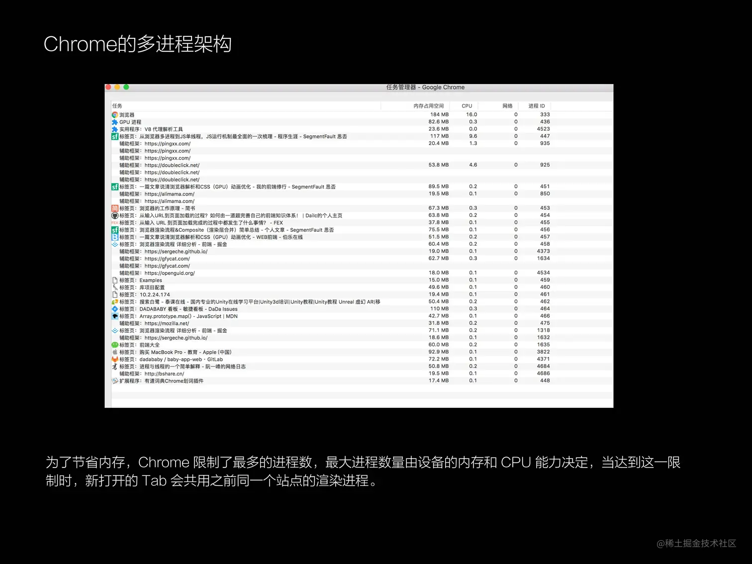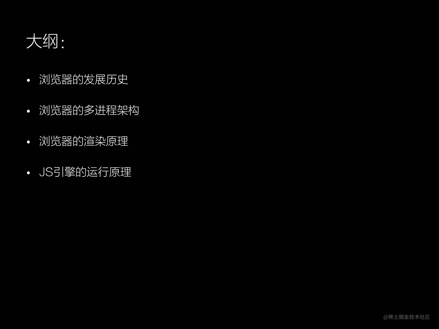 浏览器运行原理(ppt) 不气盛叫年轻人么 2020-11-23 636 阅读1分钟 本篇文章是我自己在公司做的内部分享,背景是想写一篇前端优化的原理,但是写来写去发现前端优化和浏览器本身有很大的关联,比如浏览器架构,前端渲染机制,js的event loop运行机制,就直接写了一篇浏览器运行机制的ppt,让大家先熟悉浏览器后再讲前端优化原理,本次分享取得伙伴们比较好的反响,对于后期的前端工作有比较好的指导意义。